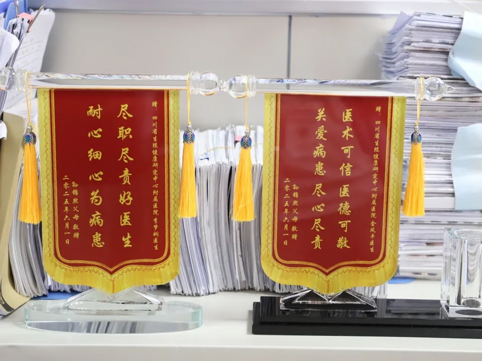 在【成都不孕不育专科医院】四川省生殖健康研究中心附属生殖专科医院(以下简称:四川省生殖专科医院)复发性流产与保胎门诊,金凤平医生收到了很多姐妹们送来的创意锦旗。